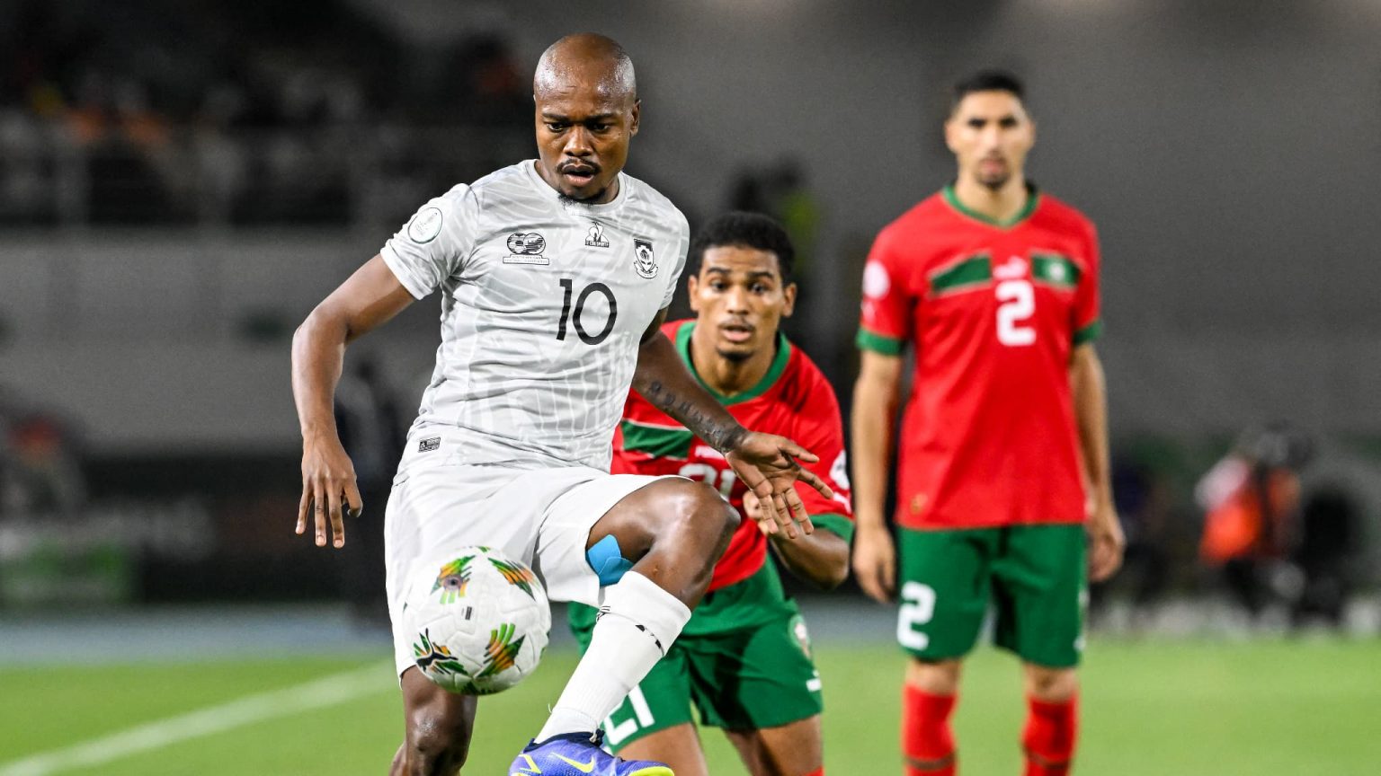 Pour le gros coup de ce soir, c’est le Maroc, demi-finaliste de la Coupe du Monde FIFA 2022, première Nation Africaine au classement FIFA, grand favori de la CAN 2023, qui vient de se faire surprendre par l’Afrique du Sud au Stade Laurent Pokou de San Pedro, 2 buts à 0.